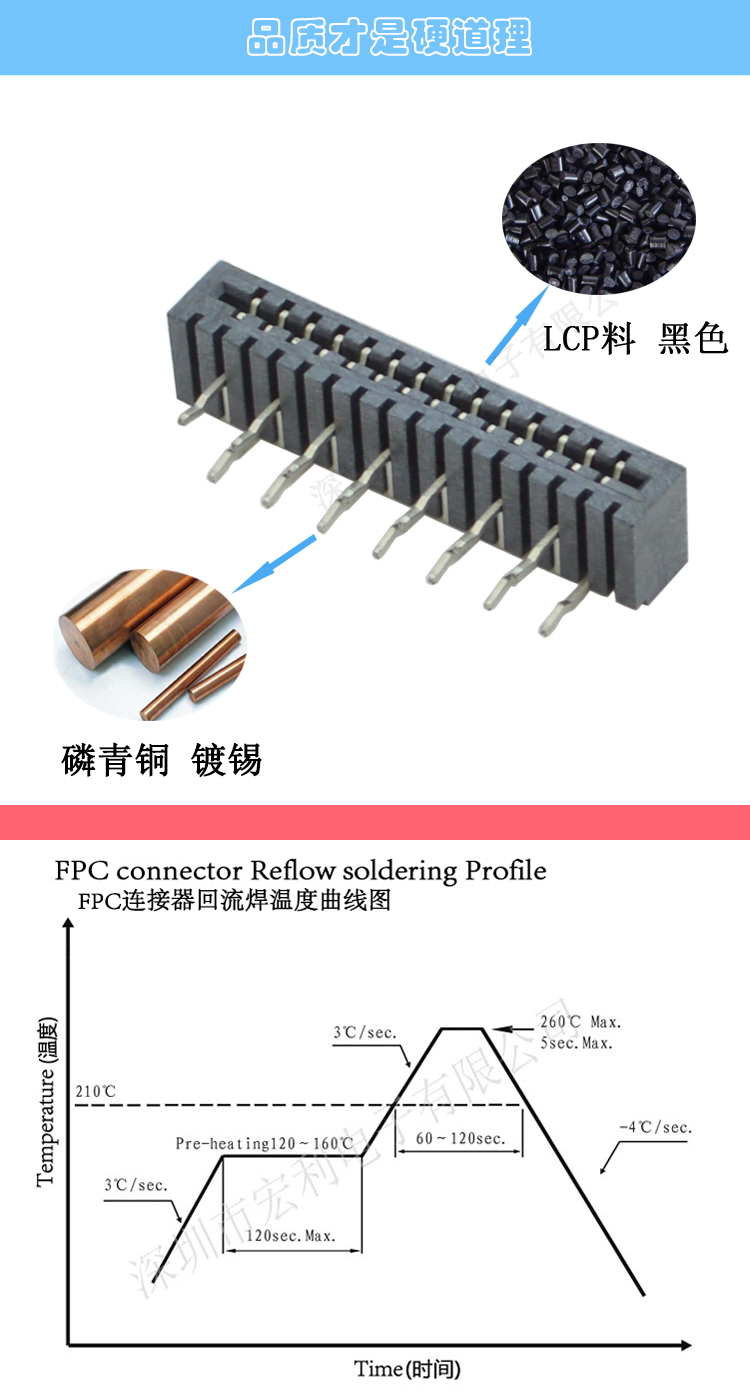 本公司一直以穩定可靠的產品質量與良好的經營信譽,取得了廣大客戶的信任.本公司所有的精密連接器產品均通過SGS環保測試.本公司主要產品有:0.3mm、 0.5mm 、0.8mm、1.0mm 、1.25mm、 1.5mm 、2.0MM、2.5mm、3.5mm間距連接器,(FPC排插),板對板 0.5mm 、0.8mm 間距連接器,共四十余種產品,上千種孔位,產品質量無飛邊,無毛刺,全部新料注塑,符合歐盟環保,孔位齊全,尺寸穩定,容易搭配,產品價格合理,如貴司有需要,可以隨時聯系我們,真誠希望能和貴司有合作的機會.產品廣泛用于:平板電腦、數碼相機、手機、讀卡機、打印機、功放音響、液晶電視、汽車音響、車載系統等領域及電腦周邊設備。